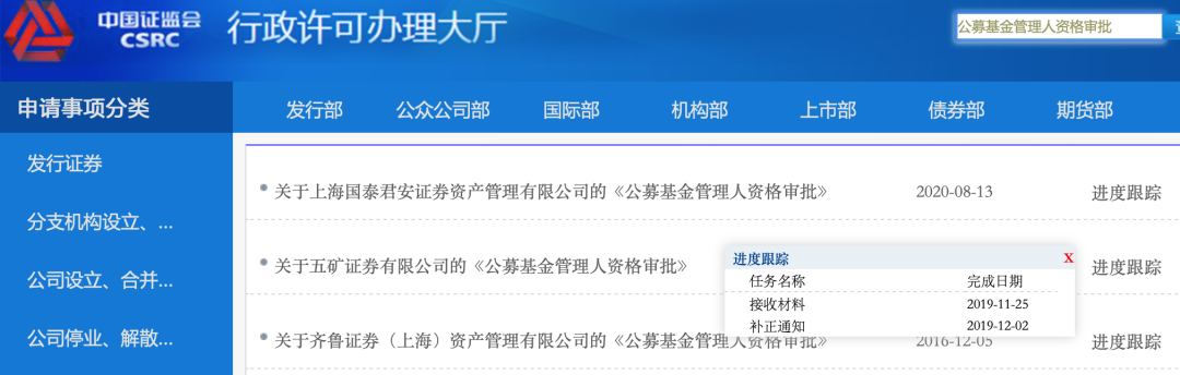 然而券商申请公募牌照长期受到“一参一控”规则的影响,近期虽有所放开,但尚不清楚牌照申请周期如何。以五矿证券为例,该公司于2019年11月递交申请材料,12月收到补正通知,截至目前已过去9个月时间,尚未进行到下一阶段。因此,券商希望监管能够加强对券商申请公募牌照的监管指导,提高公募牌照获批效率。