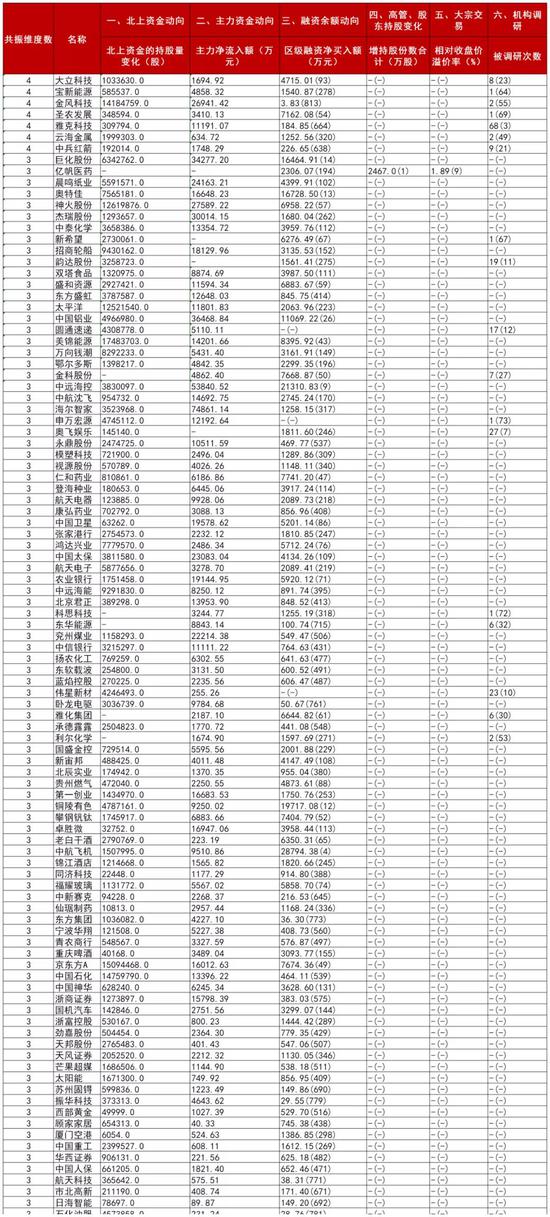 以下是最近5个交易日(11月17日~23日)中,发生4个维度和3个维度共振的个股。