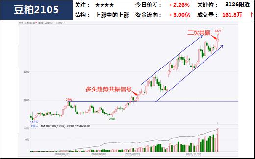受疫苗研发取得重大进展消息刺激,宏观氛围良好,加之大豆供需面利多消息较多,供给端有USDA报告调低大豆产量与期末库存预期的刺激,需求端有美豆出口量较高、压榨量大增至纪录高位的支撑,总得来说大豆基本面偏多。盘面上,多头趋势明显,今日冲击前高,多单持有跟随。
