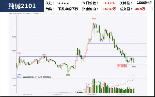 供应端,上周纯碱企业77.95%的开工率处于较高水平,叠加库存大幅提高,纯碱供应压力较大。需求端,目前玻璃产能扩张无力,纯碱需求平淡,且随着降温与降雪来临,建筑工地施工将受影响,终端市场赶工或将进入尾声,进一步拖累纯碱需求。总得来说,纯碱基本面供过于求。技术上,纯碱空头结构仍在,若盘中跌破1500可继续关注试空机会。