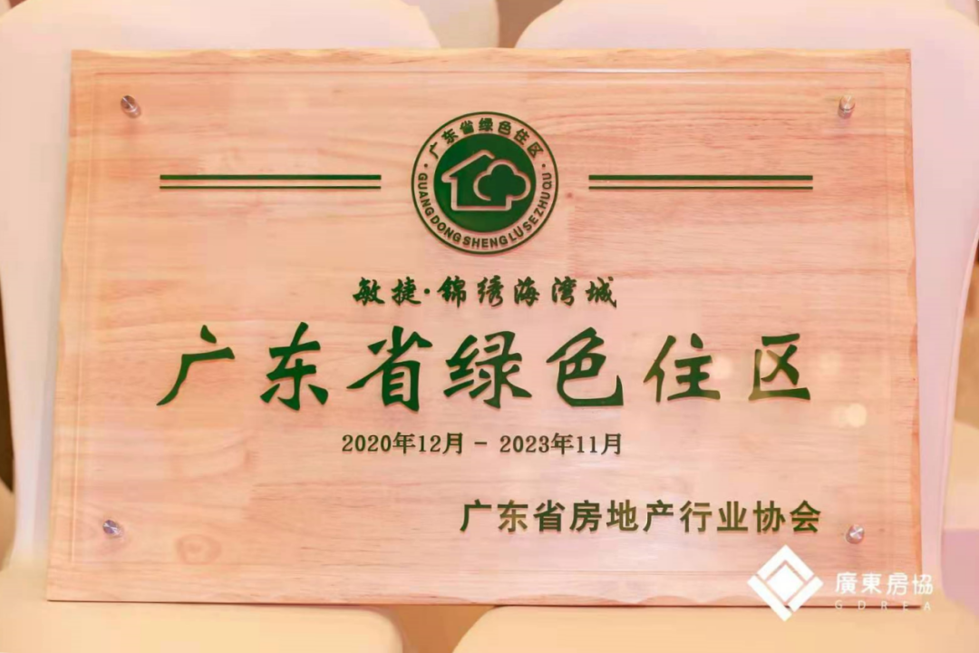 (中山·敏捷锦绣海湾城获评“广东省绿色住区”称号)