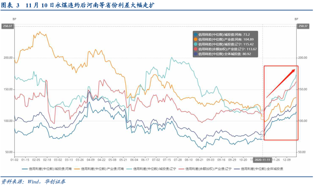 永煤违约后,城投、产业债、各等级信用债都出现了明显的利差走扩态势、各行业再融资都受到了很大冲击,具体影响详见我们此前发布的报告《信用风险的传导存在“有序性”吗?》,在此不再赘述。值得注意的是,10月23日的华晨违约也没有带来辽宁省的利差走扩,但永煤违约却导致了信用债全部企业的利差走扩,由此其影响之广体现得非常显著。