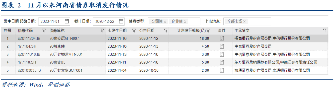 河南省在永煤违约之后出现了4单取消发行,后续没有取消发行出现,大概率是因为融资冲击之下发行困难,连计划发行都没有,则更不会触发取消发行的事件。
