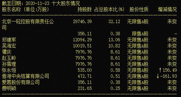 据公告,公司拟向控股股东北京一轻控股有限责任公司(下称一轻控股)发行股份购买其持有的北京一轻资产经营管理有限公司(下称一轻资管)100%股权,向北京京泰投资管理中心(下称京泰投资)发行股份购买其持有的北京红星股份有限公司(下称红星股份)45%股份,向北京鸿运置业股份有限公司(下称鸿运置业)支付现金购买其持有的红星股份1%股份。
