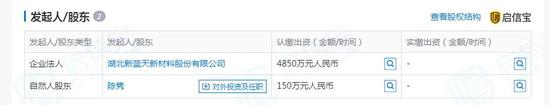 根据国家企业信用信息公示系统显示,蓝化有机硅有两名股东,其中之一正是此次高盟新材拟收购标的——湖北新蓝天,而另一名股东为自然人陈隽。此外,启信宝资料进一步显示,湖北新蓝天持有的蓝化有机硅97%的股权。