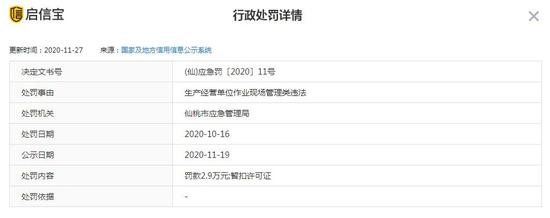 目前来看,相关部门对蓝化有机硅进行了处罚。根据国家企业信用信息公示系统显示,蓝化有机硅涉及一项生产经营单位作业现场管理类违法。决定机关是仙桃市应急管理局,处罚决定日期为2020年10月16日,公示日期为2020年11月19日,具体行政处罚内容则为罚款2.9万元;暂扣许可证。
