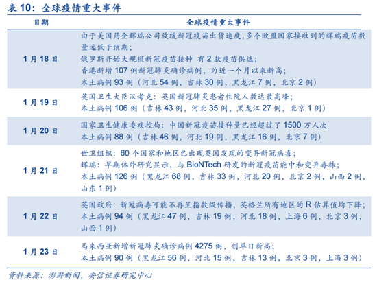 (4) 在线教育/居家办公:冬季疫情零星式的爆发将影响到通勤人员和学生群体的生活方式。目前,河北廊坊统一实行居家远程办公,北京倡导环京周边区域入京人员居家办公;同时,包括河北、广西在内受疫情影响较大的省市早在一月初就通知部分幼儿园、中小学全面暂停线下教学工作,寄宿制学校实行全面封闭管理,各高校也加强了疫情防控措施,严格排查师生健康状况和师生近期活动轨迹。后续若疫情再度发酵,为严控疫情风险,部分地区学校预计会继续采取在线方式进行教学,而部分企业将缩减面对面交流频次,使用线上会议系统或视频软件进行沟通。可重点关注金山办公、科大讯飞、腾讯控股、阿里巴巴(钉钉)、新东方-S。