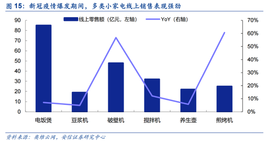 (5) 健康生活:疫情二度抬头,居民自我防护意识进一步提升。一方面,酒精棉片、消毒液、口罩等防疫物资以及消毒清洁家电需求将有所增加;另一方面,居民预计将更多采取在家烹饪的健康生活方式,叠加节假日期间居家烹饪的趣味性需求,可提升品质生活需求的各类新兴厨房小家电有望再度受益。可重点关注道恩股份、三友化工、美的集团、九阳股份、苏泊尔、新宝股份、小熊电器。