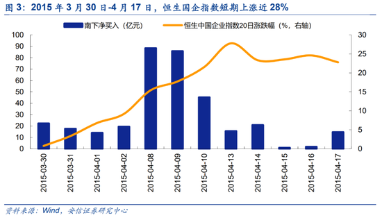 (1)2015年3月30日-4月17日,恒生国企指数短期上涨近28%;