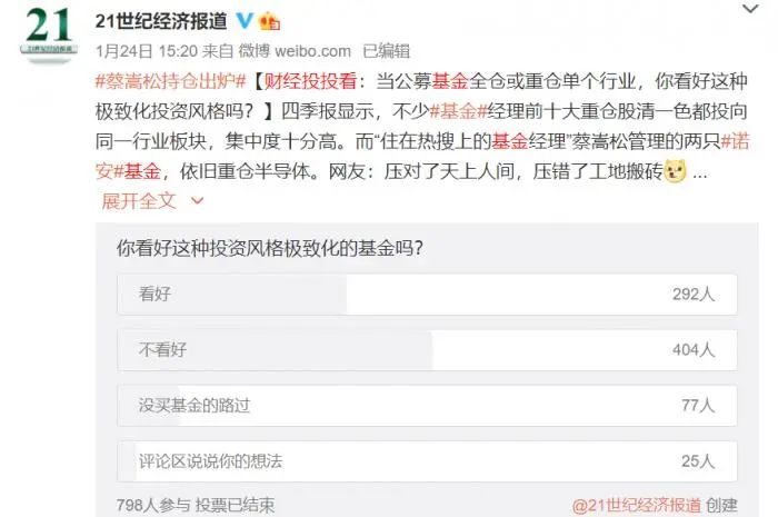据券商中国报道,集中持仓单一行业,几乎成为基金经理取得短期业绩排名领先的核心策略。年初至今进入业绩排名十强的基金中,绝大多数基金是通过对化工行业的集中持仓。基金公司四季报也显示,不少基金经理前十大重仓股清一色都投向同一行业板块,集中度十分高。不过,21网调实验室的调查显示,大多数网友对一把梭的极致化投资风格并不认同,而是更倾向于灵活配置型基金。