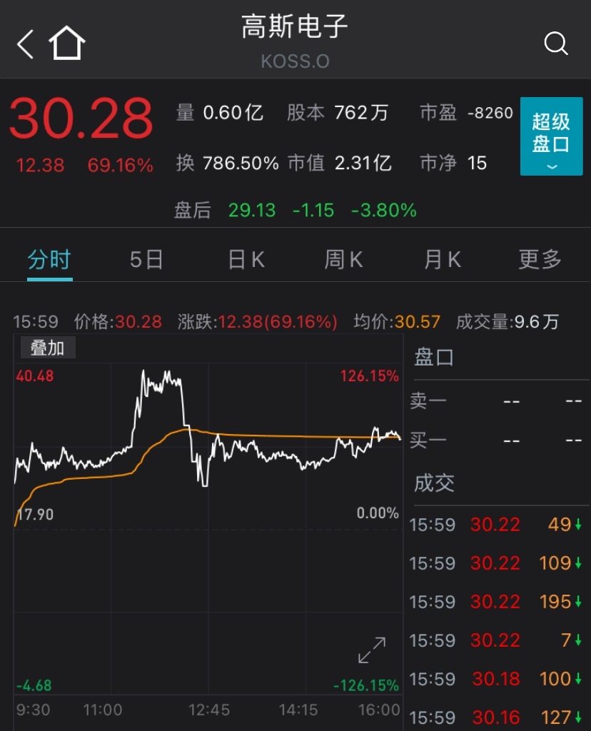 其中,游戏驿站盘中一度冲高至348.50美元,涨幅达41.15%,成为罗素2000指数第一大成分股;但随后大幅跳水,一度跌约20%;收盘时涨幅为6.21%。高斯电子、AMC娱乐控股等WSB概念股也走出类似走势。