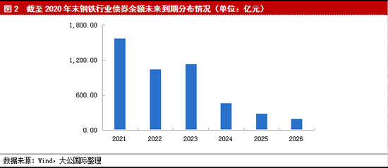 2020年,钢铁行业发债规模和结构整体较为稳定;债券存续规模仍较高,未来三年行业将处于偿债高峰期,特别是2021年债券偿付和滚动压力较大。
