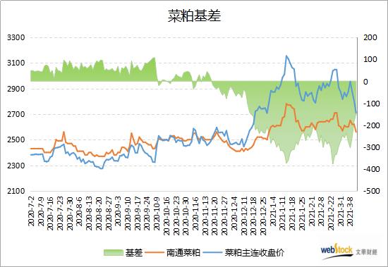 原标题:期现竞相向下 菜粕基差一路向上 来源:文华财经