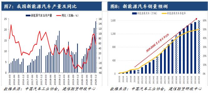 根据中汽协最新数据显示,2021年2月,我国新能源汽车产销量分别达12.4万辆和11万辆,环比下降36.2%和38.8%,同比增长7.2倍和5.8倍,新能源汽车产销量同比保持稳步增长。