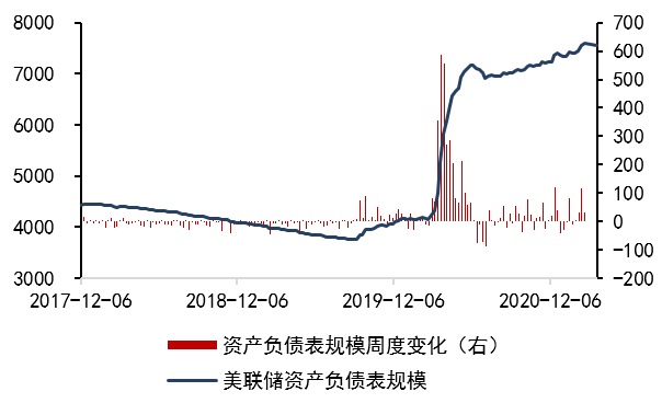 截至3月3日,美联储资产负债表最新总资产规模为7.6万亿美元,美国财政部总账户存款(TGA)当前余额为1.4万亿美元。根据美国财政部最新表态,财政刺激计划将优先使用TGA余额,其次为新发美债,预计TGA余额于2021年6月底降至5000亿美元,即TGA账户存款减少9000亿美元,则新发美债规模为1万亿美元,按此测算,美联储总资产规模将达到8.6万亿。从美联储再度大规模购债扩表的角度,需求不足导致的长端美债收益率攀升趋势也会得到一定程度的缓解。