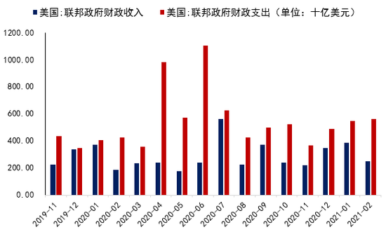 除了疫苗进展加速,全民接种完疫苗的时间点已提前至二季度,美国经济数据的强劲修复也进一步印证了经济复苏预期,美国2月ISM制造业和服务业PMI分别为60.8、55.3,预期为58.6、58.7,制造业经济数据继续走强。2月季调后非农就业人数增加37.9万人,远超预期的增加18.2万人,失业率为6.2%,好于预期值的6.3%,就业数据大幅走强主要依靠服务业修复加快,整体来看,美国劳动力市场仍有6.4%的修复缺口。