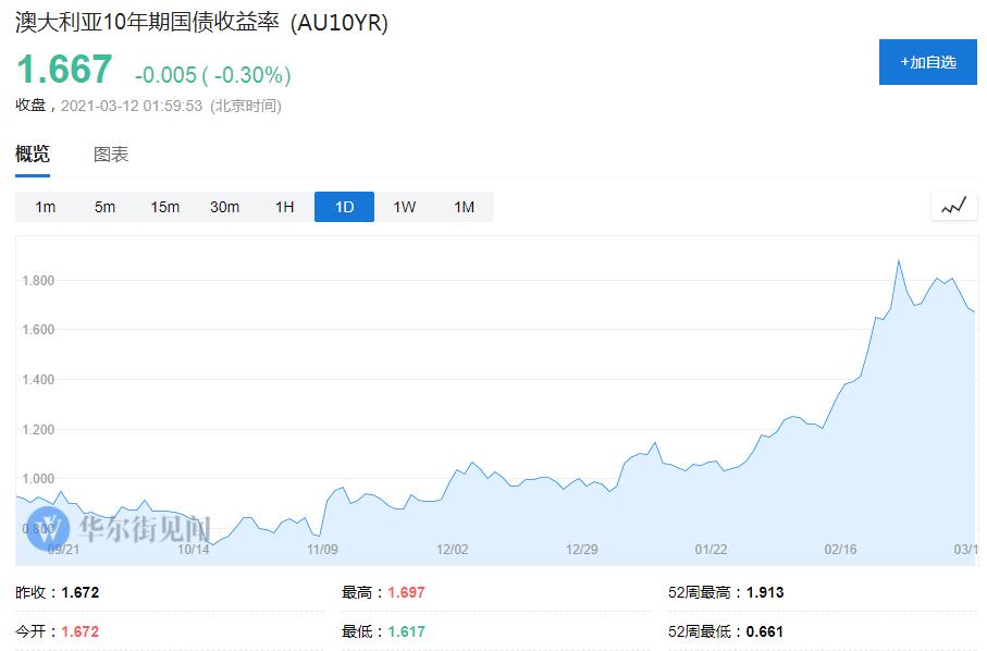 澳大利亚10年期国债收益率几乎是一样的走势,半个月前一度升至1.9%上方。