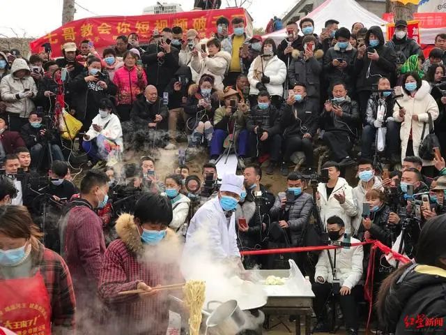 人们蜂拥而至,却并非都是为了吃面。无数被高举着的手机密密麻麻,把他围在中心,那阵势像是众星拱月,又像是群狼环伺,人数最多的时候有5000多人!网友们被他3元一碗的面感动,但真正想吃面的人却被隔在了人群之外。
