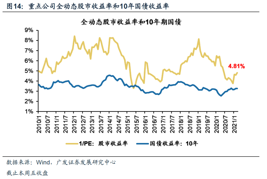 本周重点公司全动态股权风险溢价由上周1.43%上升到本周1.55%,重点公司全动态股市收益率由上周4.67%上升到本周4.81%。