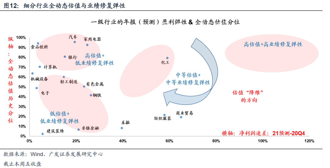 我们判断:2021经济“弱修复”,“顺周期”(周期/可选消费)的盈利预期也会“弱改善”,全动态估值处于低位 & 盈利增速(预期)改善空间较大的行业,具有更高的“性价比”,建议重点关注中等估值&中等盈利弹性领域的“估值降维”。本周中等估值&中等盈利弹性领域:化工。