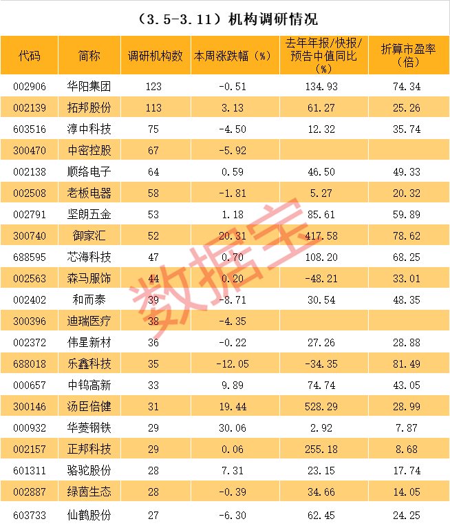 华阳集团成为近一周调研机构数量最多的股票。数据显示,合计有123家机构调研了该公司,包括39家基金公司、15家证券公司、14家私募、15家保险公司等。