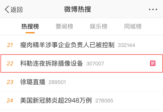 3月16日,微博话题#科勒连夜拆除摄像设备#登上热搜榜。