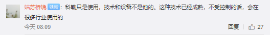 也有网友认为,科勒只是使用,技术和设备不是他的。这种技术已经成熟,不受控制的话,会在很多行业使用的。
