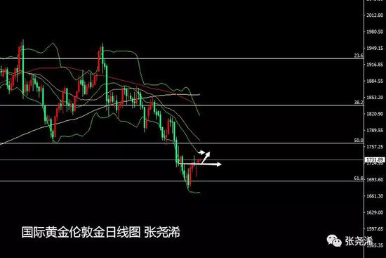但如能站稳此阻力则可预示着反弹的到来,而跌至1670美元以下则可能开启跌向1600美元后更低的大门。不过那时,则也是看好回撤筑底的阶段,中长线看涨依然可以就此进场。操作手法就是,一个是顺势跟进,一个是抄底把握。点位上,上关注1760美元阻力,下关注1700附近支撑。