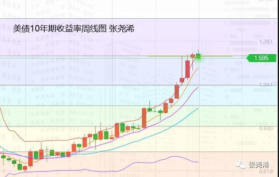虽目前只是在触及高位后的遇阻回落,整体仍保持着上升趋势,并仍有上升空间,但最终,收益率不会永远上涨,因此将出现一个转折点,收益率走得越高,就越接近拐点。只要收益率见顶,那就将是黄金的底部。重点是什么时候见顶,一个目前的1.6附近,一个是1.97收益率了。具体思路及操作以实仓信息为主。