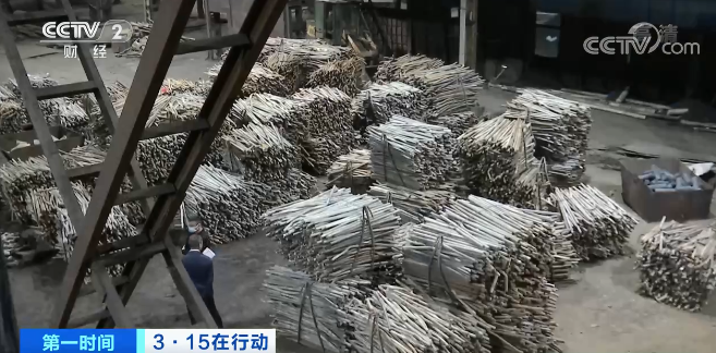 根据记者此前了解,这家加工厂在去年7月拿到生产资质,那个时候检查,发现他们用的原材料都是钢锭。但这一次3·15晚会曝光之后,执法人员过来检查的时候,发现他们的原材料全都变成了废旧的钢铁。