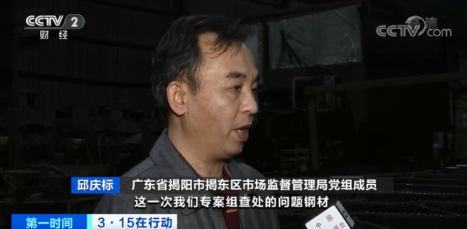 广东省揭阳市揭东区市场监督管理局党组成员邱庆标:这一次我们专案组查处一批问题钢材,涉案违规人员有15名。目前我们先查封,立案查处,查明问题钢材去向。下一步我们进行拉网式全覆盖地进行专项清查整治行动。
