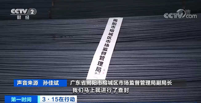 广东省揭阳市榕城区市场监督管理局副局长孙佳斌:今晚现场查获“瘦身”钢筋,我们马上查封、抽样送检,看质量是不是合格。明天将追查钢筋的来源与去向。