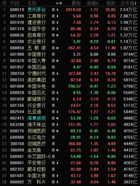 周一大幅下挫的基金重仓股,今天止跌企稳,贵州茅台重回2000元,隆基股份、阳光电源、爱尔眼科等等大市值个股企稳回升,维持住了指数的稳定,而银行、地产等板块也表现较为强势。这些权重板块和个股的企稳也使得市场大幅下跌的空间有限,这有利于周三A股继续企稳。