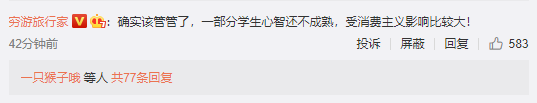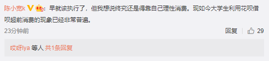 对此,不少网友留言评论,认为“确实该管管了,一部分学生心智还不成熟,受消费主义影响比较大”,还有网友戏称,“花呗失去了最大的市场” 。