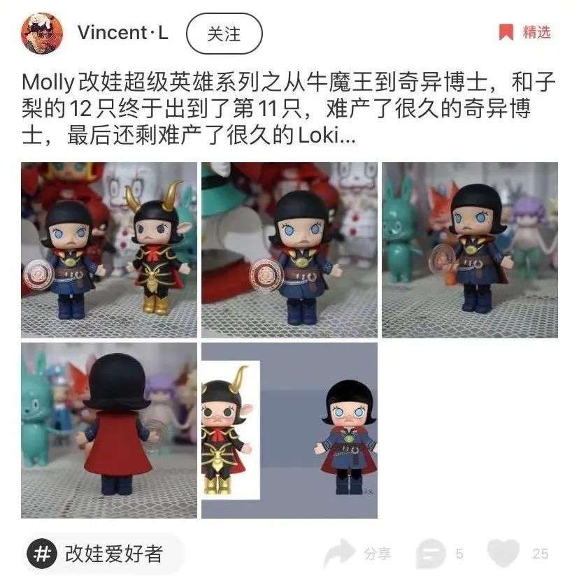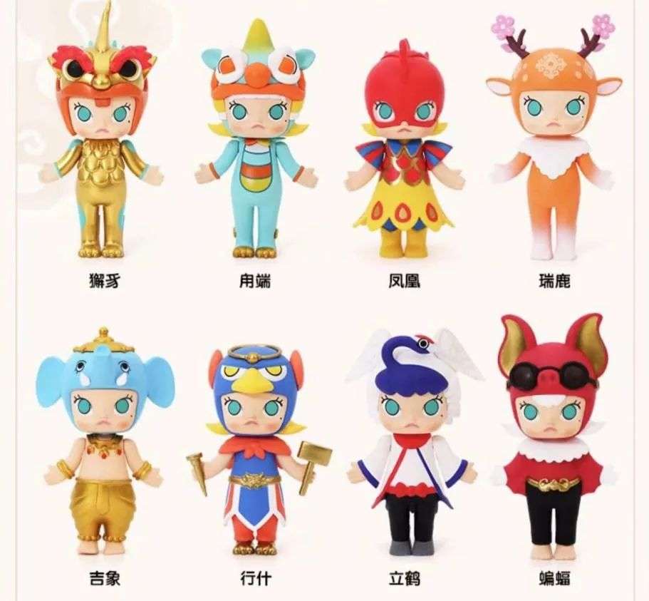 以Molly为例,普通款有12个不同的常规造型,一箱12盒,抽中率为1/144。隐藏款只有1个造型,抽中率为1/720。