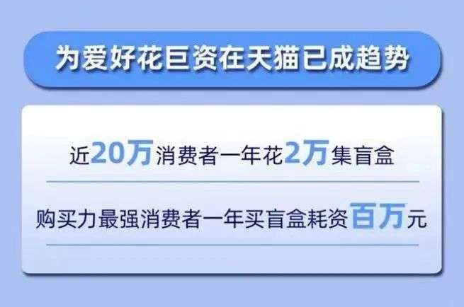 目前,有接近20万的消费者在盲盒上花费超过2万元,甚至有的硬核玩家一年豪掷百万。