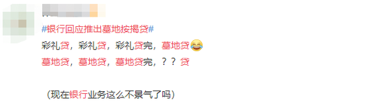 还有网友针对墓地贷和近期热点彩礼贷灵魂发问“现在银行业务这么不景气了吗?”