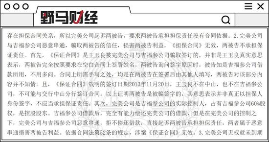 查阅裁判文书网可知,吉福参围绕一起借款担保事项涉及多起诉讼,案由包括保证合同纠纷、追偿权纠纷、股东知情权纠纷等,还涉及一起股东出资纠纷。主要涉及方包括吉福参、吉福参股东王玉良、马质朴,和完美(中国)。