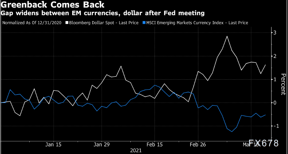 在鲍威尔发出鸽派信息导致美元汇率和短期美债收益率下滑一天后,美元兑多数全球货币再次走高。美国债券收益率攀升扩大了其与其它主要国债收益率的差距。此外,新冠病毒疫苗的推出以及拜登政府的刺激措施,增强了人们对经济增长加速的期待。