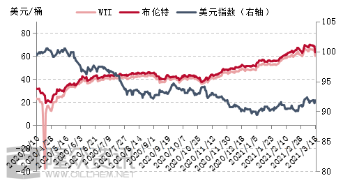 (1)欧洲多国疫情再显严峻。随着法国、德国、意大利等国将采取更严厉的疫情限制措施,欧洲再次全面封锁的预期引发市场担忧。另外由于担心可能出现的副作用,一些欧洲国家已停止使用阿斯利康的疫苗,疫苗接种受阻已抵消了前期对油价带来的利好支撑,给经济复苏及需求反弹带来了极大的不确定性。