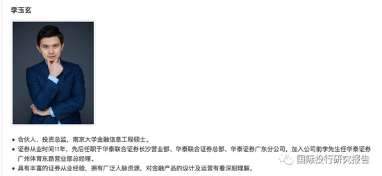 李玉玄的资料是可以在网上查到的,IPO说明书表示,李玉玄2007年至2017年1月在华泰证券工作,其中有恒茂所在地湖南长沙工作的经历。