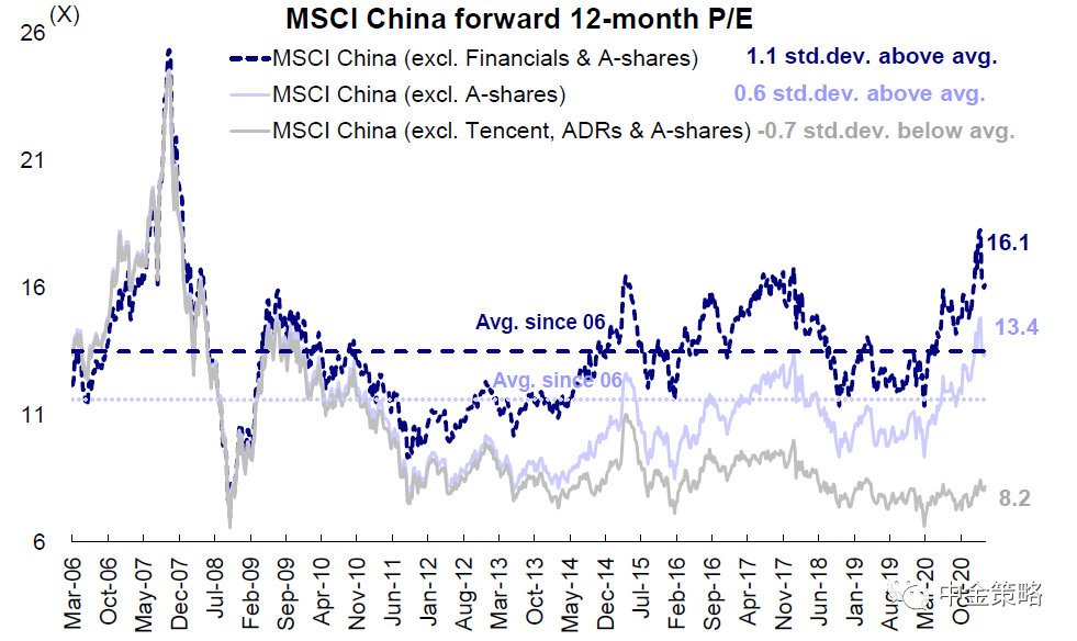 MSCI中国指数估值水平近期回落