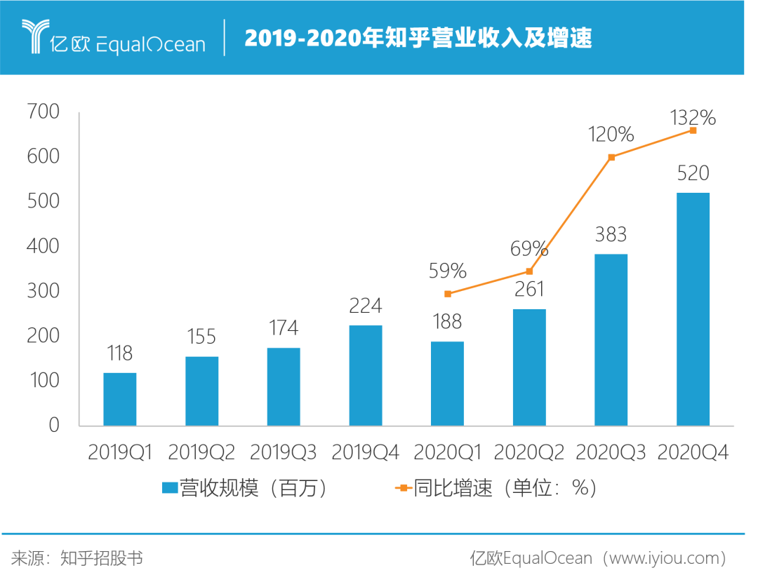 据招股书,2020年知乎总营收13.52亿元,相较2019年的6.71亿元同比增长101.7%。其中广告的营收贡献达到60%以上,付费会员的营收贡献从2019年初的12%增长至2020年末的20%。