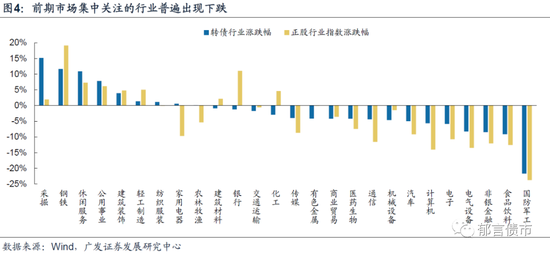 分行业来看,前期市场关注度高度集中的军工、食品、电新等行业,无论是正股还是转债层面都出现了幅度较深的下跌,而此前关注度相对较低的采掘、钢铁、公用事业等行业品种,反而在进入2021年后取得了相对较高的收益。