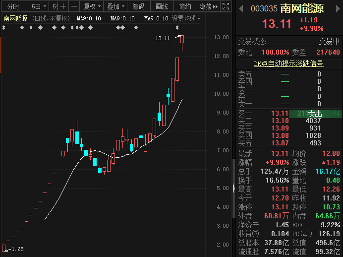 在近期碳中和板块各细分赛道概念轮动时,其复合型的业务模式获得投资者青睐,近5个交易日的龙虎榜数据显示,其获机构席位净买入超1亿元,顶级游资章盟主常用席位国君上海江苏路上一交易日增持南网能源近5000万。