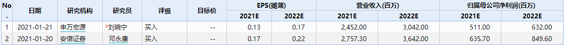 近期覆盖南网能源的研报仅有申万宏源与安信证券,评级均为买入。机构一致预测显示,看好其近两年维持净利润收入40%的年增速。