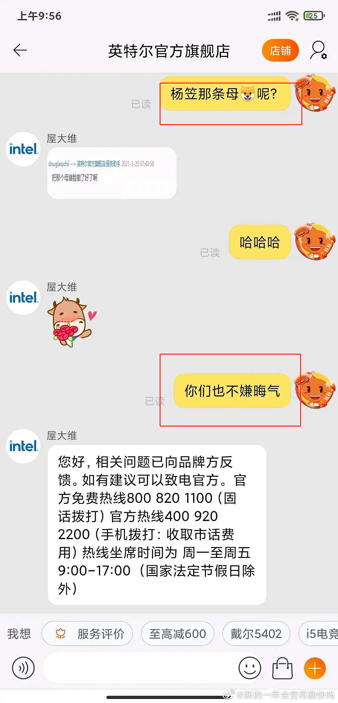网络上广为流传的一张英特尔官方旗舰店客服的回应图,其中客服涉嫌内涵辱骂杨笠的做法,无疑让事件火上浇油。在官方尚未表态时,电话客服、网店客服某种程度上就成了品牌的“官方发言人”,如果言论不当,波及品牌形象也是毫无疑问的。