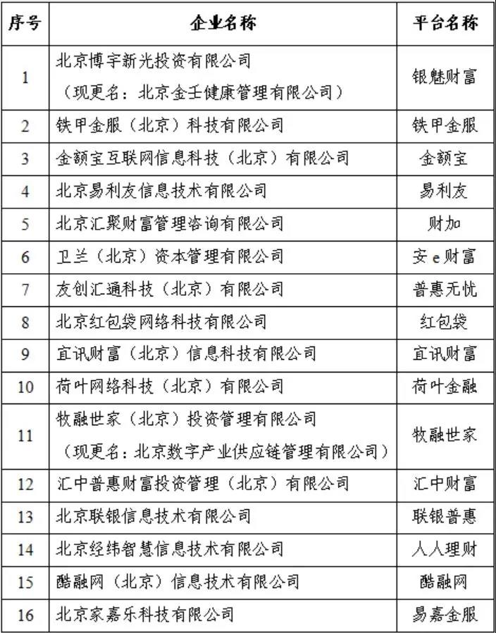 名单显示,朝阳区第二批自愿清盘退出的P2P网贷机构包括人才IPO、洋钱罐、长涛金融、中泰金控、华镇金福、融益盈、厚金贷、鱼猫金福、上融所、京储街、律合金融、玲珑金管家和众筹宝。