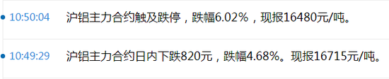 3月23日早盘,沪铝主力合约盘中快速跳水,触及跌停价16500元/吨。截至中午收盘,沪铝主力合约下跌3.05%,报17000元/吨。