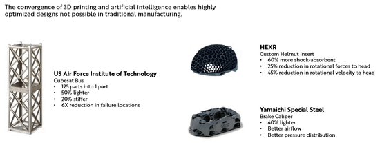 ARK表示,与传统的减法制造方式不同,3D打印是一种逐层制造物体的增材制造方式。3D打印缩短了设计和生产之间的时间,将权力转移给设计师,并以传统制造成本的一小部分降低了供应链的复杂性。